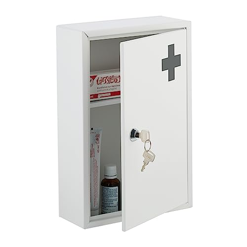 Relaxdays Medicskåp, låsbart, 2 fack, H x B x D: 32 x 21,5 x 8 cm, för mediciner, hängande medicinskåp, vit, järn
