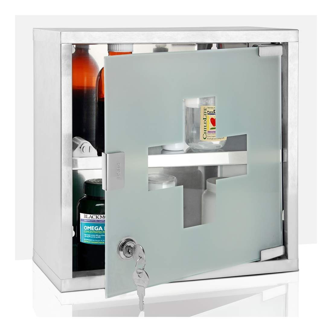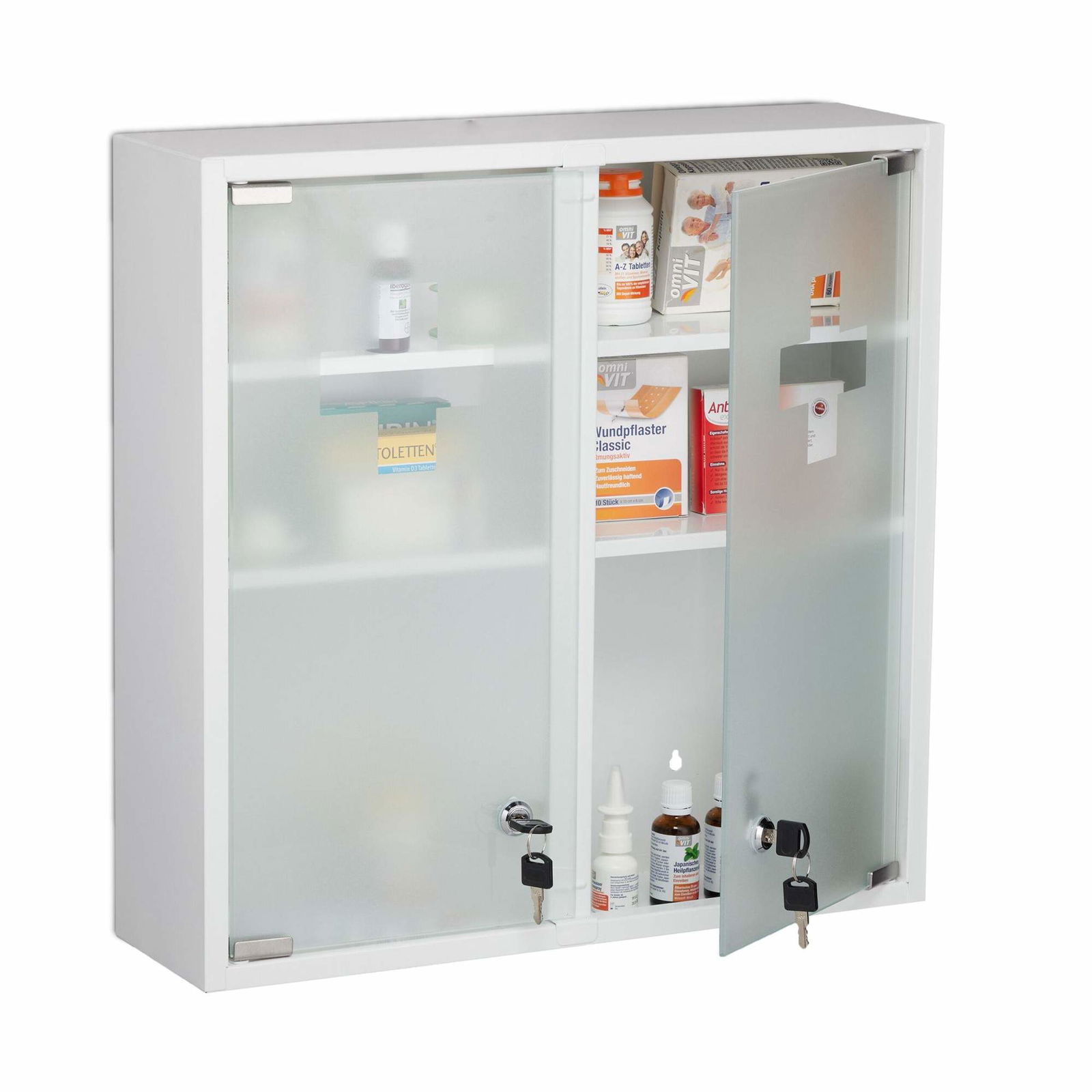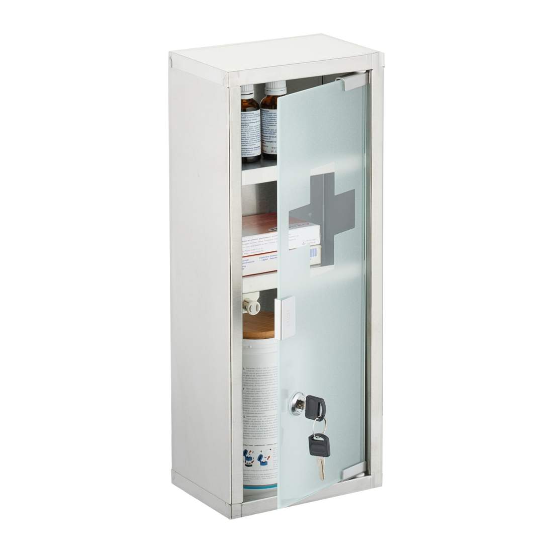 Medicinskåp – frostat glas, 2 fack, låsbart