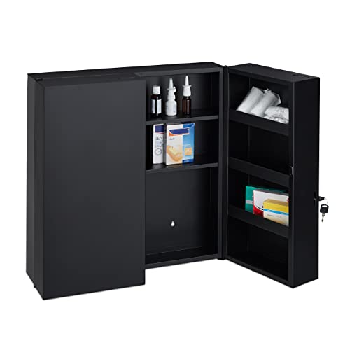 Relaxdays Medicinskåp XXL, låsbart, 11 fack, stål, HBT: 53,5 x 53 x 19 cm, medicinskåp 2 dörrar, antracit