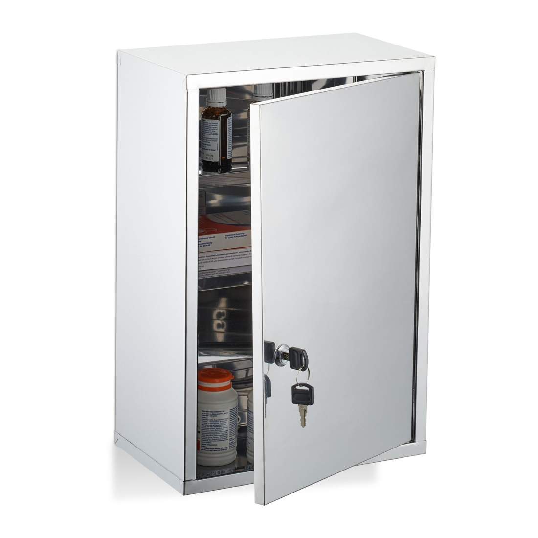Medicinskåp i rostfritt stål, 2 fack, låsbart