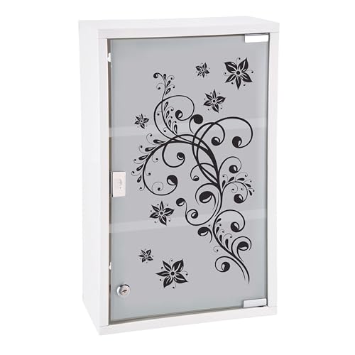 Spetebo Medicinskåp i metall i vitt med frostat glas och tryck – låsbart medicinskåp med vackert utseende
