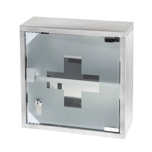 Medicinskåp i rostfritt stål / låsbart badrumsskåp / apoteksskåp med frostad glasdörr