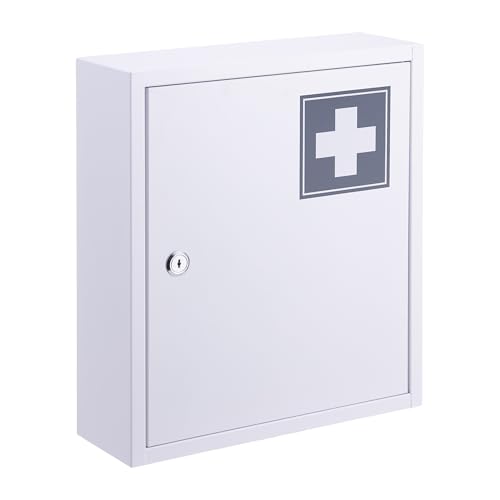 Uniclife Väggmonterat medicinskåp med låsbart nyckellås för första hjälpen, medicinsk förvaringslåda med stor kapacitet, säkert väggskåp, förvaringslåda av stål