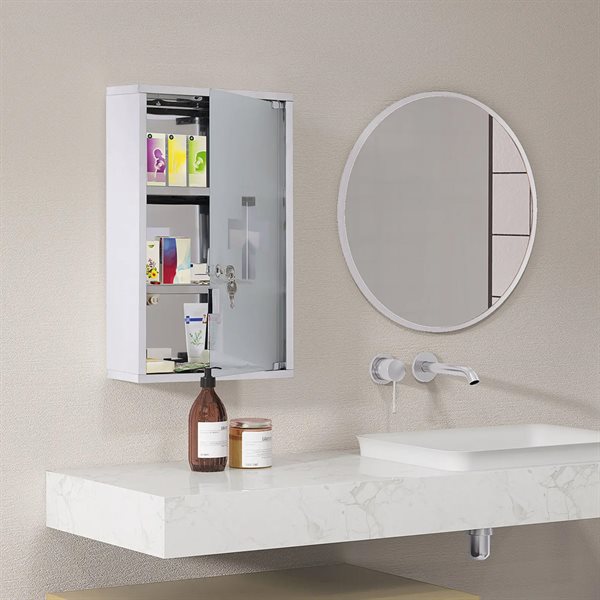 Låsbart medicinskåp med 3 hyllor / väggmonterat apoteksskåp i stål / badrumsskåp för mediciner - Vit