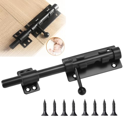 Luckwaii kraftig skjutgrindsspärr bult säkerhetsdörr låsbult med hänglåshål, 195 mm längd spärr lås SUS304 rostfritt stål glidbultar lås med skruvar för sovrum toalett (20 cm matt svart)