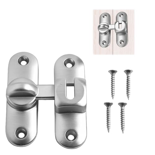 Låslås, dörrlås i rostfritt stål, 90 graders skjutdörrlås, dörrlås med skruvar, skjutdörrlås, 90° spärrlås, skjutdörrlås, låsbult, för kök, sovrum, badrum silver