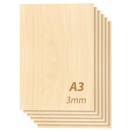 Tocome 20 stycken A3-lindplywood 420 x 297 x 3 mm laserkompatibel lind plywoodplattor laser trä 3 mm plywood lindplywood