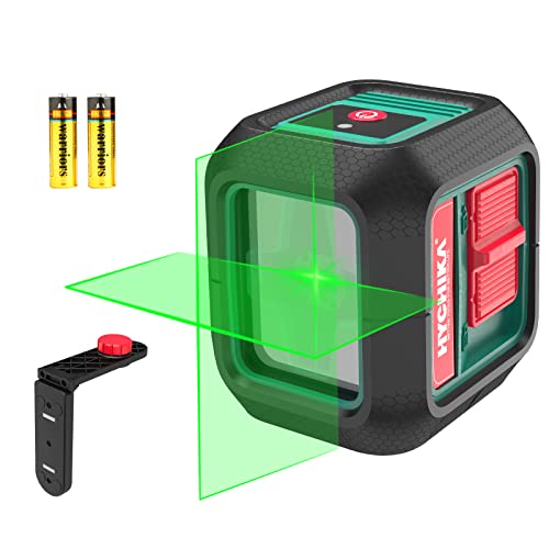 HYCHIKA Cross Line Laser Spirit Level, självutjämnande grön linje laser 15 m, Crossline Laser med magnetisk hållare 2 x AA-batterier för bildhängning och gör-det-själv-tillämpning