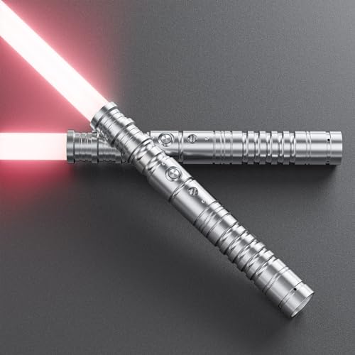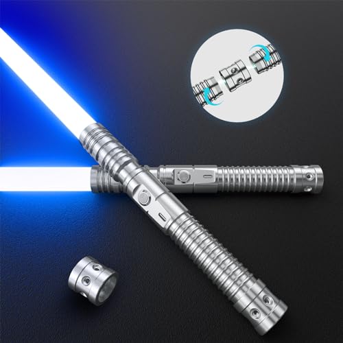 Hlieeosfcn ljussvärd 2-pack, lasersvärd för barn och vuxna 2-i-1 RGB 15 färger USB uppladdningsbart svart metallhandtag svärd, lämpligt för halloween jul cosplay, silver