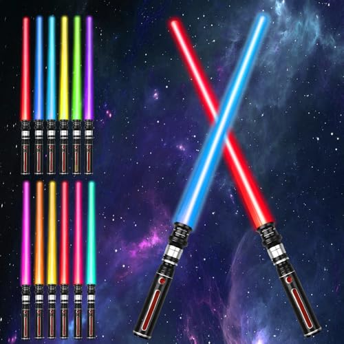 SLVCREK Laser Star Wars svärd Laser svärd 2 set med 12 färger, uppladdningsbart lasersvärd med ljud, halloween rollspel kostymer, leksaker för barn och vuxna