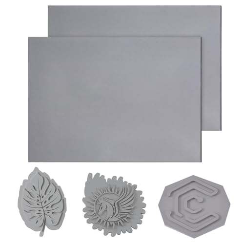 Creatorally 2 Ark Gummistämpelark för Lasergravering, A4 31 * 22 CM Grå Gummitillverkning Mjuk Dyna för Stämplar Bläck, 2,3 mm Tjocka Handgjorda Hantverk Carvingblock