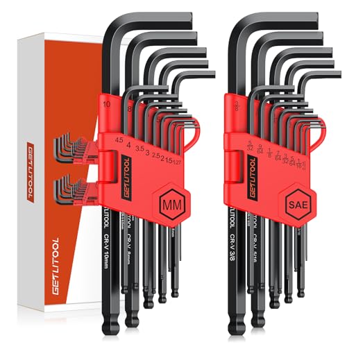 GETLITOOL 26 st insexnyckel, professionell insexnyckel set med 1,27 mm-10 mm, 0,05–3/8, modeller lasergravering sexkantsnyckel 6150 kromvanadinstål för möbelmontering