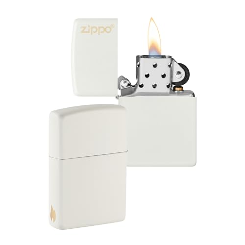 ZIPPO – – Zippo-logotyp och flammotiv – vit matta – lasergravering – stormtändare, påfyllningsbar, i högkvalitativ presentförpackning, en storlek, 49452-095112