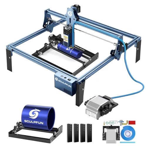 SCULPFUN S9 Lasergraveringsmaskin med laserroterande rulle, Air Assist, 90 W effekt, högprecision, CNC lasergravering, skärmaskin, laserskärare, laserskärare för 15 mm trä