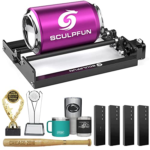 SCULPFUN Laserrotationsrulle, lasergraverare Y-axel rotationsrulle med 360° rotation för lasergravering av cylindriska föremål, burkar (inklusive 4 upphöjningsfötter)