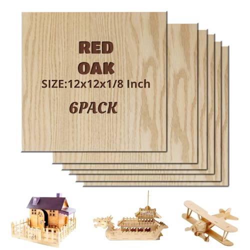 ATOMSTACK Röd ek plywood, 6 delar 30 x 30 cm oavslutade plywoodark för lasergravering CNC-skärning hantverk målning