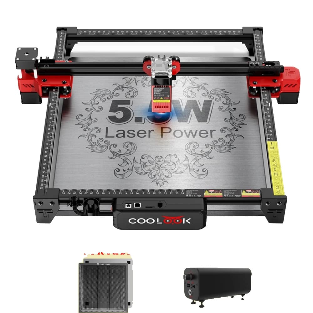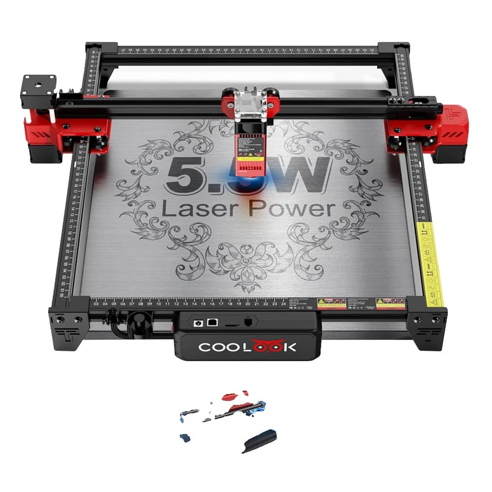 Coolook Lasergravering Maskin, 90W Effekt, Hög Precision Gravör för Trä, Akryl och Mer,90W CK1-55 = 90 watt CK1-55, EU-kontakt, Paket 2
