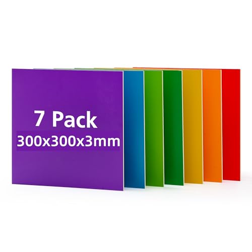 ROWOOD Plywoodskiva, färgglad, 3 mm, 300 x 300 mm, 7 stycken, lindträplatta, tillskuren, efter mått, obehandlat pysselträ, trä för modellbygge laserskott, lasergravering, trä, brinnande målning, CNC