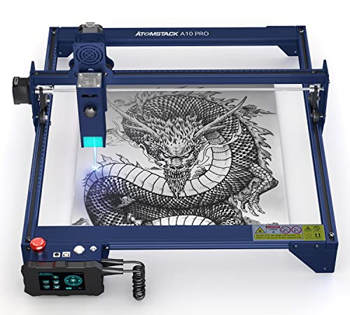 Atomstack A10 PRO lasergraveringsmaskin, 50 W, laserskärare med 10 W uteffekt, offline-gravyr och touch-kontroll, dubbel komprimerad plats för trä, metall, akryl, läder, keramik, 1 1000 mm/min
