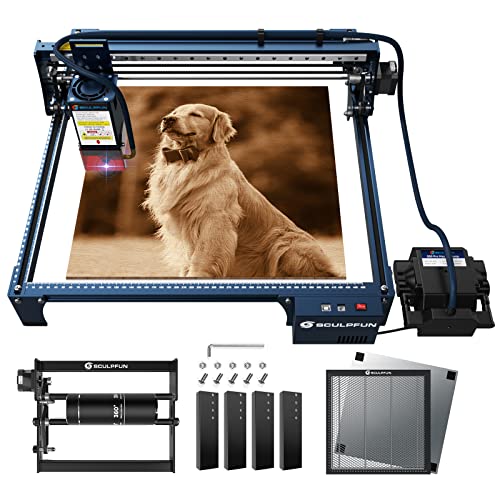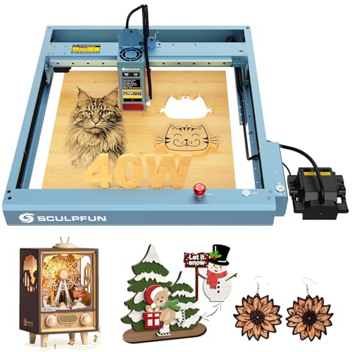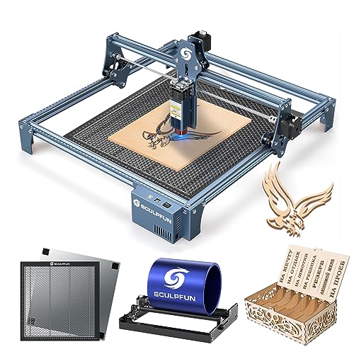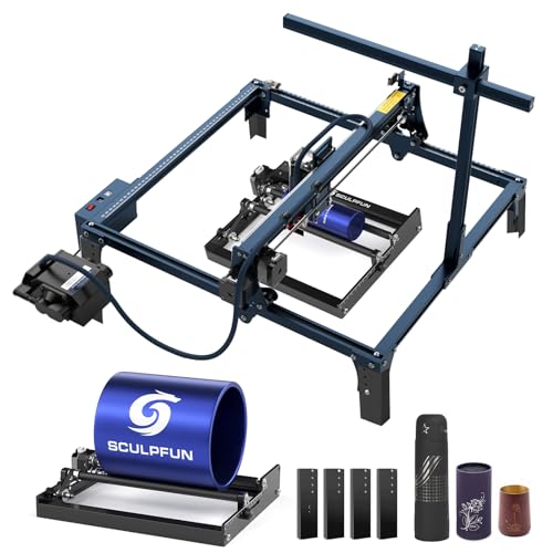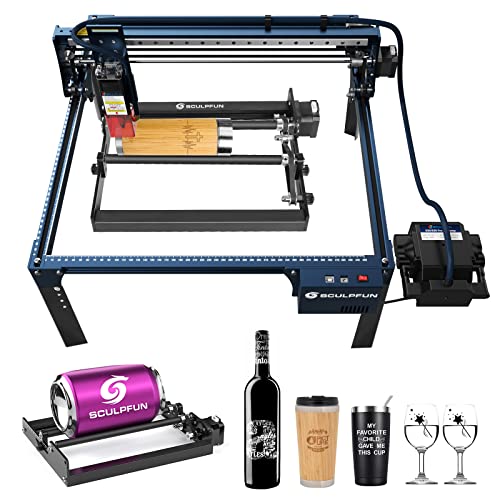 SCULPFUN S9 Lasergravyr Laserskärare med Y-axel roterande rulle 360°, Honeycomb Arbetsbord 400 x 400 x 22mm, Ultrafin laserutmatning Lasergraveringsmaskin Laserskärning för trä 15mm