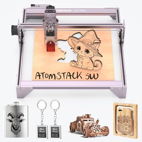 ATOMSTACK A5 5W lasergraveringsmaskin 40W CNC-lasergravyr 410 x 400 mm yta, 5,5 W lasereffekt, ögonskydd, fast fokus, lämplig för gör-det-självare