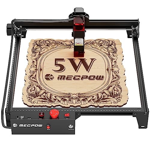 Mecpow X3 lasergraveringsmaskin, 60 W laserskärare, 5 W lasergraveringsskärmaskin, lasergraveringsmaskin för trä och metall, graveringsmaskin med nödstopp, flam- och gyrodetektering, 16,0 x 15,7"