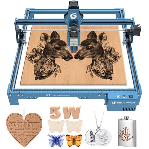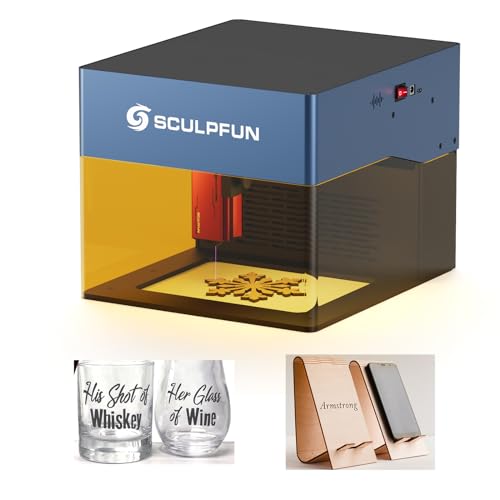 SCULPFUN S30 Laser graveringsmaskin med Automatisk Air Assist, 0,06 * 0,06 mm Ultrafin kompressionspunkt, 2-i-1 lasergraveringsmaskin och skärare för plywoodläder, 32-bitars moderkort