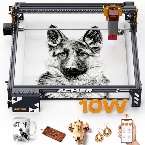 Acmer P1 S PRO lasergraveringsmaskin, 10 000mW lasergravör, 380 x 370 mm graveringsmaskin, 0,01 mm högprecisionslasergravering och skärning för trä och akryl