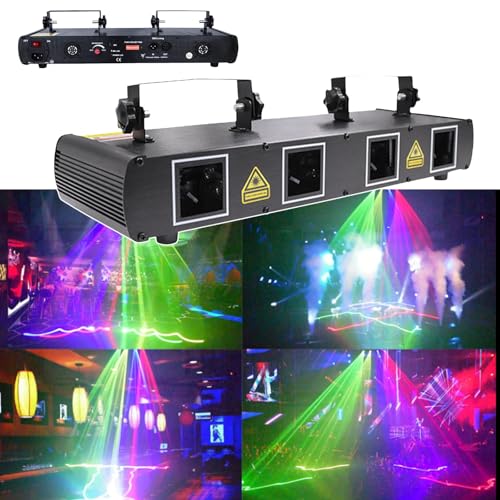 Scenbelysning, 4-strålande ljudaktiverat laserljus, DJ-ljus DMX512-projektorfestbelysning, for födelsedagsdisco KTV-klubb Scenbelysning DJ