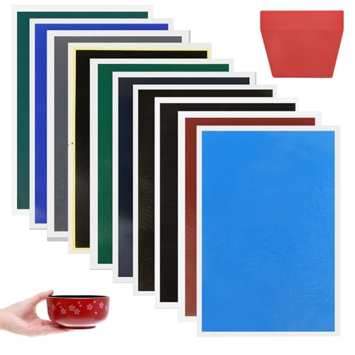 WANDGU Lasergravyr markeringspapper: 10 stycken färgpapper för lasergravyrmaskin, keramiskt laserpapper färggravyrpapper med skrapa, 10 färger lasertryckpapper för gravering för gör-det-själv hantverk