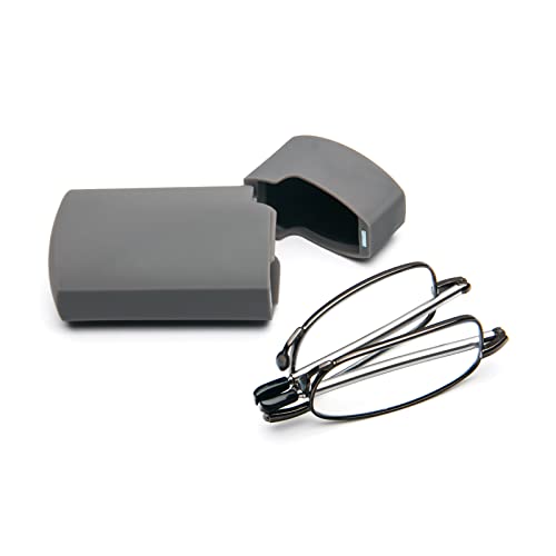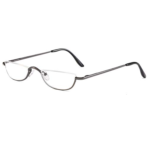 Unisex läshjälp, halvmåne, halvram av metall, fjädergångjärn, ultratunna läsglasögon (grå, +1,5)