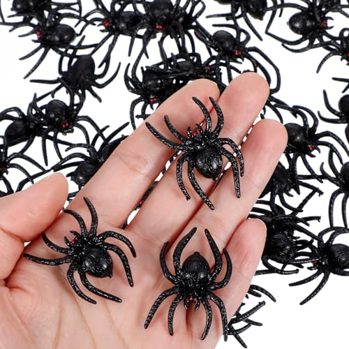 Amabro 50 stycken halloween spindel, 4 x 3 cm spindlar, liten plastspindel falsk halloween skalbagge realistisk leksak halloween dekoration skämt läskig rekvisita för halloween hemfest