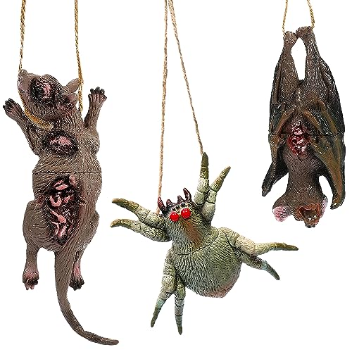 Halloween läskig blodig rått, halloween spökhus hängande racket, halloween rekvisita hängande djur, halloween hängande dekor fladdermus spindel mus, halloween dekoration utomhus, halloween