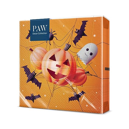 Tass – servetter 3-lager (33 x 33 cm) I 20 st I Perfekt för Halloween-fester dekorationstillbehör I höst bordsdekoration I färgglada pappersservetter – pumpa fladdermus spindel läskig I rolig