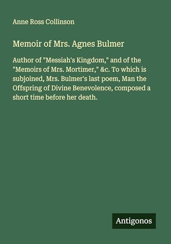 Memoir of Mrs. Agnes Bulmer: Author of "Messiah's Kingdom," and of the "Memoirs of Mrs. Mortimer," &c. To which is subjoined, Mrs. Bulmer's last poem, ... composed a short time before her death.
