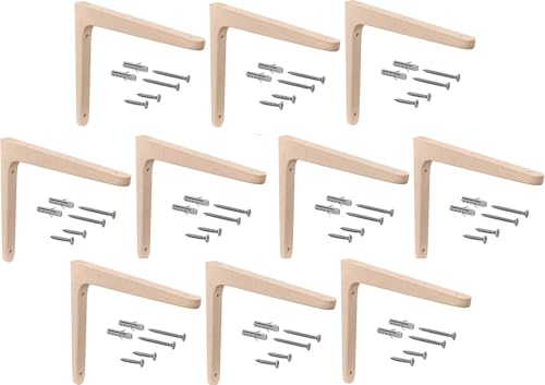 Gedotec träkonsol av bok | 10 st. hyllvinklar av massivt naturträ | 250 x 150 mm | TAUM | lastkapacitet i par upp till 60 kg | hyllhållare lämplig för bokhyllor | tunga lastbärare, vägghyllor
