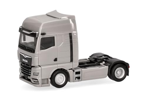 Herpa lastbil modell MAN TGX GX dragbil, 2-axlad (med spegelkameror), platina grå, miniatyr i skala 1:87, samlarobjekt, Made in Germany, plast