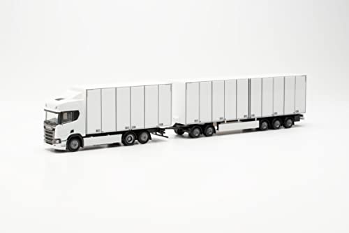 herpa 315517 CR20 Lastbilsmodell Scania CR 20 HD Sverige combi, originaltrogen skala 1:87, modell lastbil för diorama, modellbygge samlarobjekt, dekorativa miniatyrmodeller av plast, vit