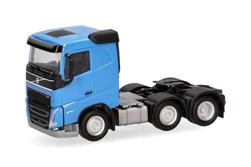Herpa lastbil modell Volvo FH med plant tak, 3-axlad dragbil (6x2), himmelsblå, miniatyr i skala 1:87, samlarobjekt, Made in Germany, plast