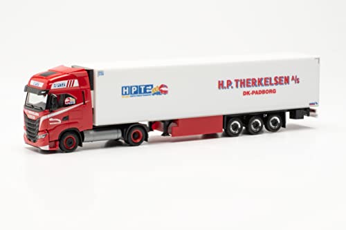 Herpa Miniatyr lastbil Iveco S-Way LNG Semirtrailer Kylskåp Traktor H.P.Therkelsen, 1/87 skala, Collection mockup, modellering, Tysk modell, Plast figur