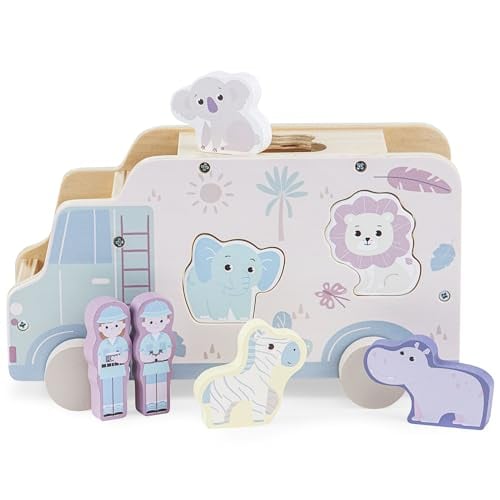 Mamabrum, träsafarilastbil - djursorterare, många sätt att ha roligt, rolig lastbil träpussel barn träbil Montessori träleksak