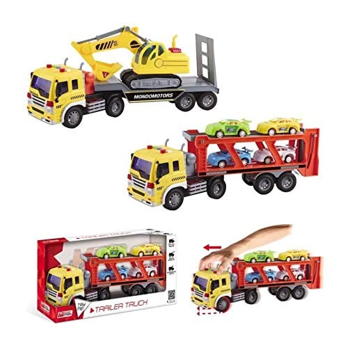 MONDO Motors - Friction Trailer Truck Assortment - Lastbil med dragavlastning för barn - storlek 40 cm - Truck & Excavator, Autotransport Trailer - 51176