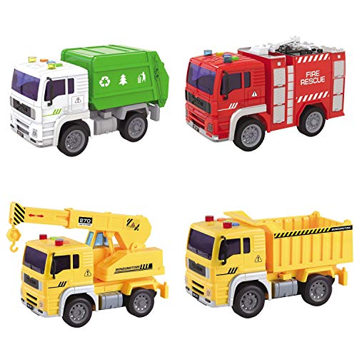 Mondo Motors - Friction Truck Assortment - Lastbil med bakåtdragning Dragkoppling för barn - Storlek 20 Cm - Arbetsbilar, Avfallsbilar, Brandmän - 51174