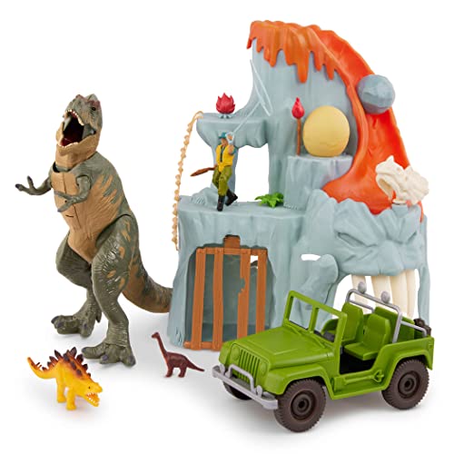 Terra Dinosaurie Leksaksset – vulkan, T-Rex med ljus och ljud, dino-ägg, lastbil, minidinosaurie och actionfigur – för barn från 3 år