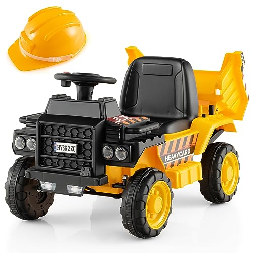 COSTWAY 6 V elbil för barn, sittvagn med skyddshjälm, traktor upp till 2,5 km/h, elektrisk lastbil för barn från 18 månader