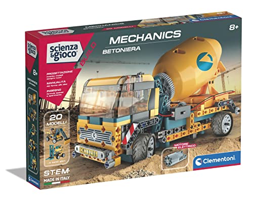 Clementoni - Science Build-Lastbil Betongblandare-Set Barn, Mekanisk Laboratory, Vetenskapligt spel 8 År (italiensk version) -Tillverkad i Italien, Multifärg, 19296