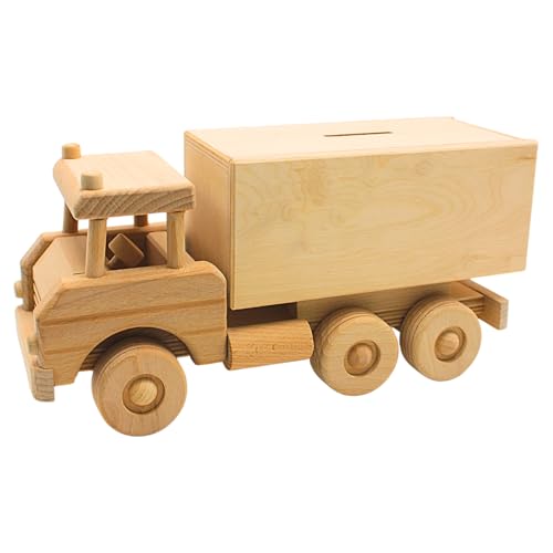 Dekorhjälte24 hållbart mobilträ – sparbössa som lastbil, XXL – lastbil – sparbössa för barn, lastbil, spartransport, stort trä – lastbil, L/B/H 30 x 11 x 15 cm.