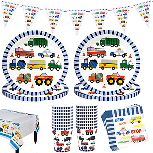 Konstruktion födelsedagsservis dekoration pojkar barn fordon byggarbetsplats kran mixer lastbil tallrik koppar pappersservetter bordsduk banderoller