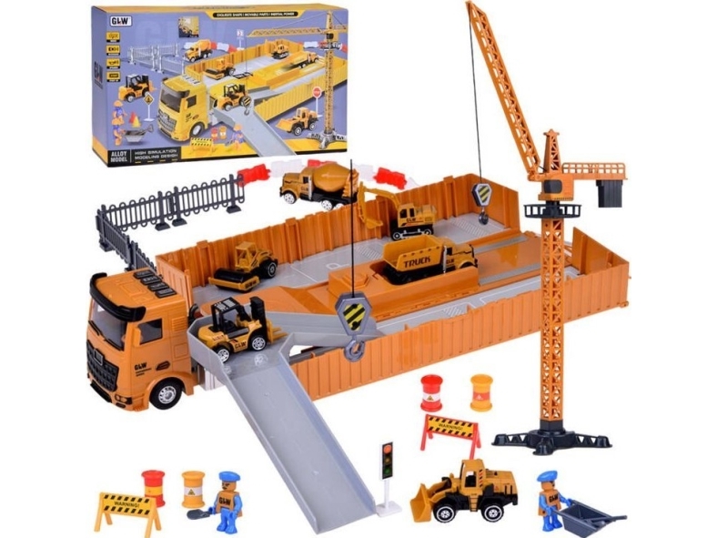 Jokomisiada Interaktiv Lastbil Med Hopfällbart Släp Kran Gaffeltruck Za5065