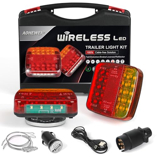 AOHEWEI trådlös belysning LED-set Magnetiska släpbakljus Kabelfri 12V/24V lastbil bak ECE EMC godkänd för släp, lastbil, husvagn eller lastbil